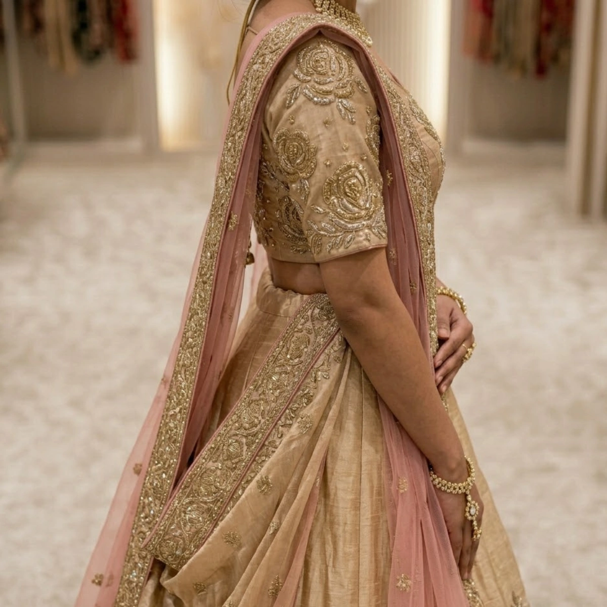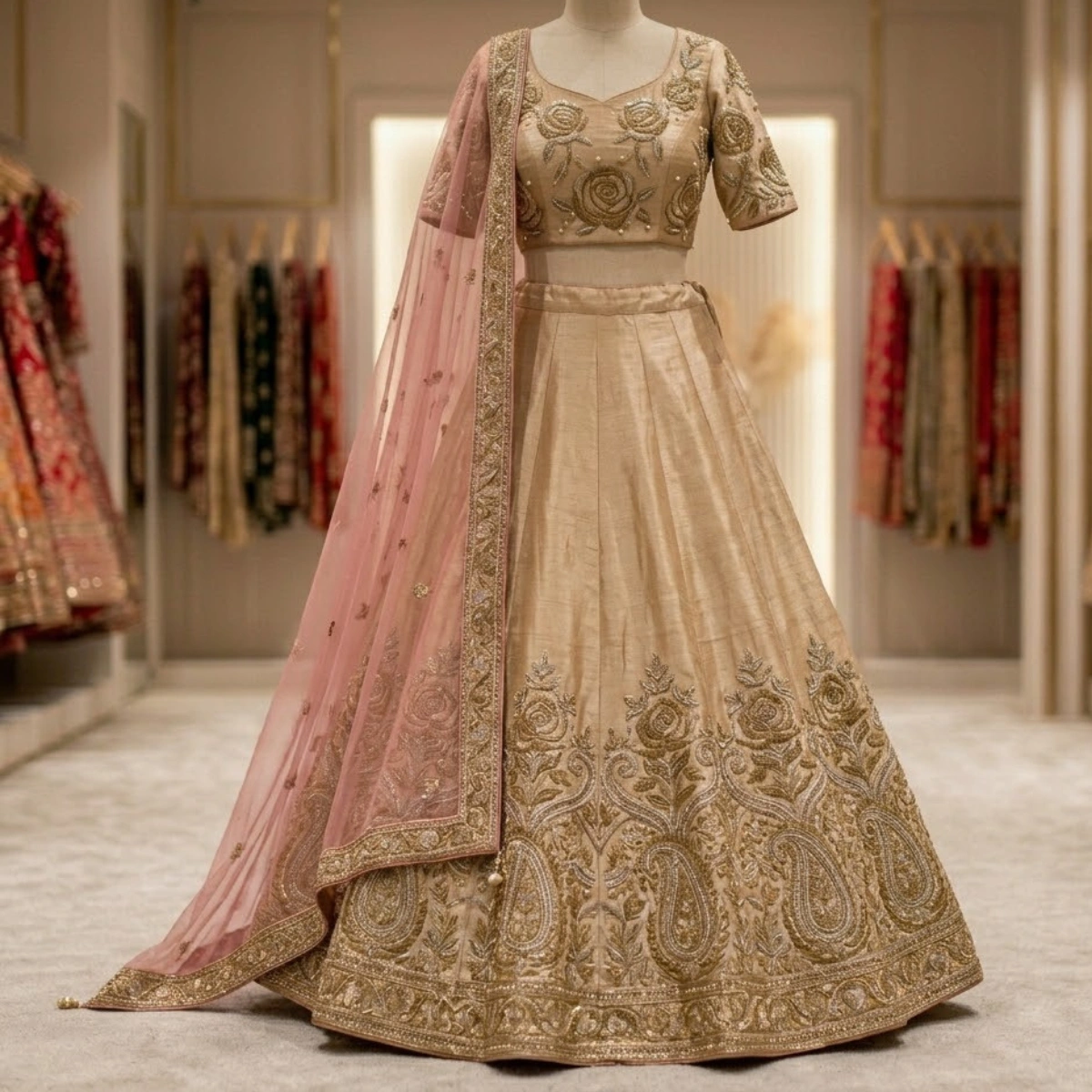 A modern lehenga set designed with fine detailing and comfortable fabric, making it ideal for pre-wedding events.