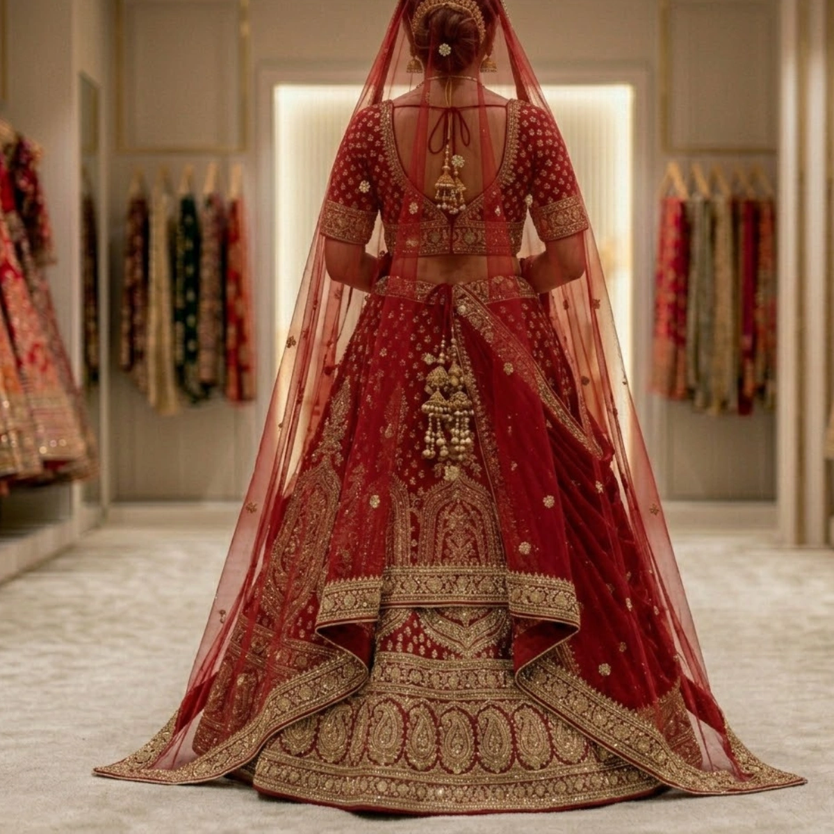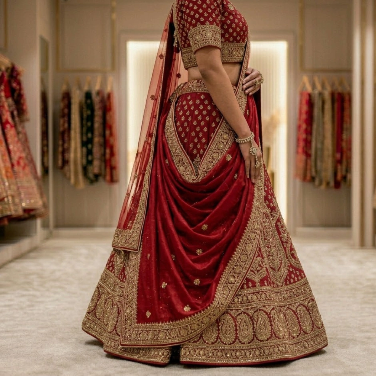 Designed with intricate embroidery and premium fabric, this lehenga is perfect for brides seeking a grand traditional look.